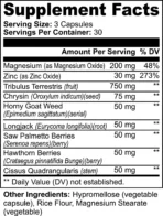 Support Men’s Vitality and Wellness: Our carefully crafted dietary supplement is designed to promote men’s health and well-being without containing testosterone. Formulated with a blend of key nutrients including magnesium, zinc, tribulus terrestris, chysin, horny goat weed, longjack, saw palmetto berries, hawthorn berries, and cissus quadrangularis, our product supports various aspects of men’s health.